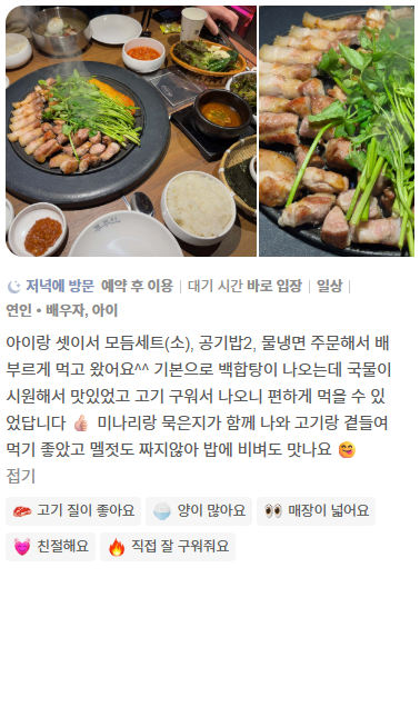다 구워져 나오는 고깃집